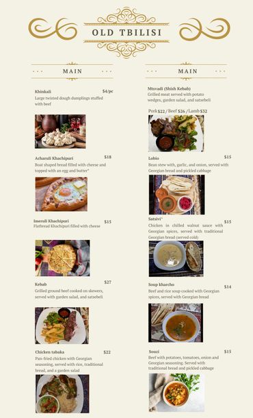 Discover the authentic tastes of traditional Georgian cuisine at Old Tbilisi. We are dedicated to sharing our rich cultural heritage and the dishes we lovingly prepare for our guests. From savory khinkali to hearty soup kharcho , our menu offers a delightful journey through the vibrant flavors of Georgia.
